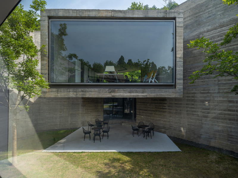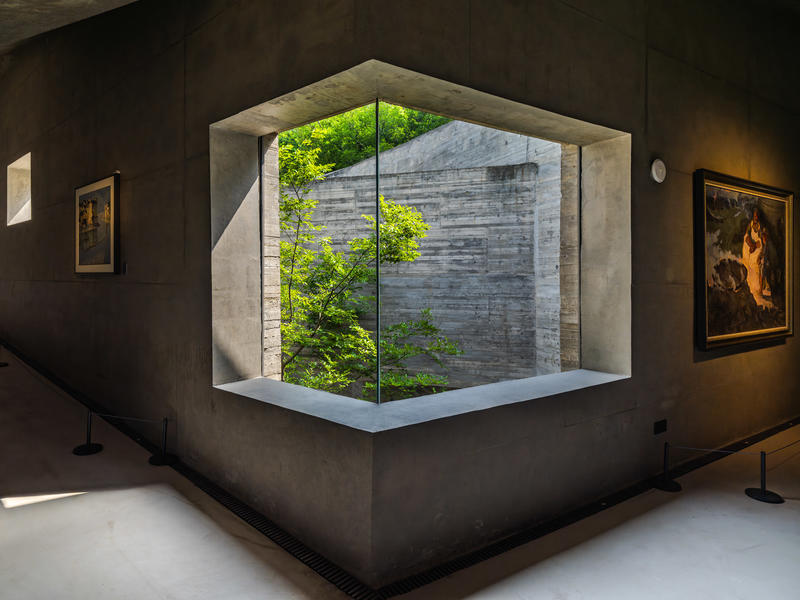 历时十一载精心营造。在郁郁葱葱的树木环绕和遥远山谷的掩映中,这座由混凝土浇筑而成的建筑有着雕塑般的凝练之美,又向外传达出一股浓厚的重量感。
